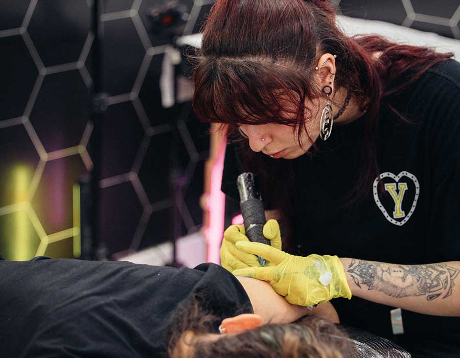 Kitty/Yas especializada en blackwork y fineline estilo dark & cute, donde hay una mezcla definida entre los detalles finos, delicados y un toque oscuro bastante influenciados por el cibersigilismo.